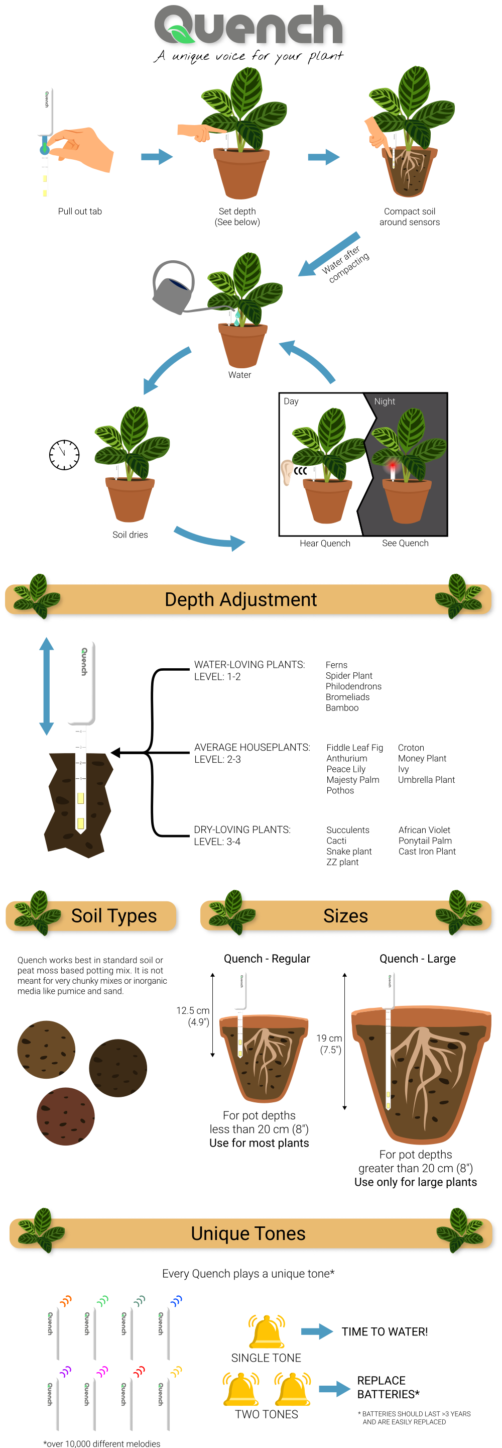 "Watering seems easy, but it's one of the main causes of plant distress, and it's stressful as a plant parent when you're not sure what your plant wants. Whether you're an over-waterer or an under-waterer, Quench helps ease the watering guesswork, making plant parenthood that little bit easier!"